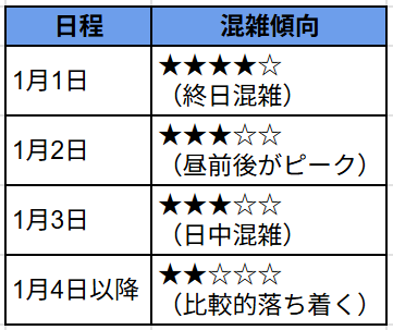 三が日の混雑ピーク時間帯は?