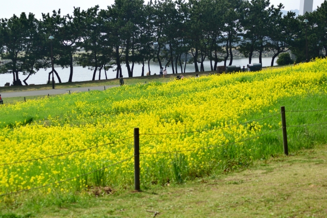 葛西臨海公園はアクセスの良さから、菜の花の見頃時期には多くの人が訪れます。