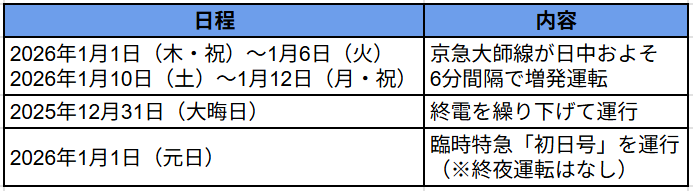 電車で行くなら:京急の年末年始特別ダイヤに注目