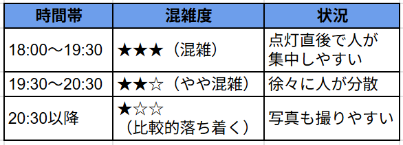 ライトアップ時間帯の混雑状況は?【過去実績から予想】