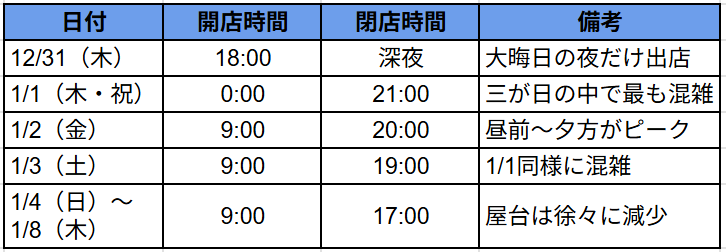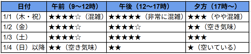 三が日の屋台混雑目安(2026年予想)