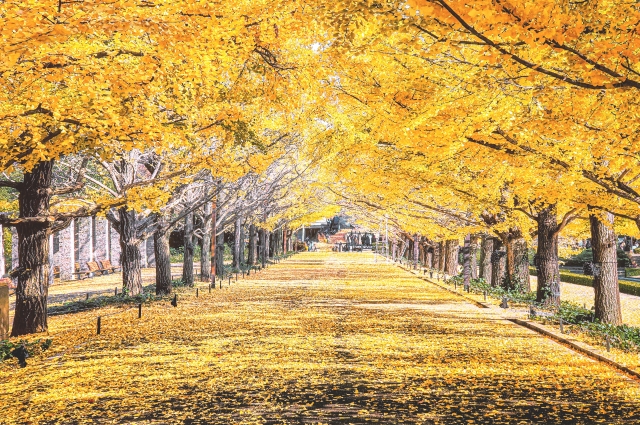- イチョウ並木:11月10日〜20日ごろ