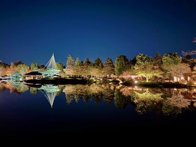 昭和記念公園では、毎年秋に「黄葉紅葉まつり」とあわせてライトアップが行われています。