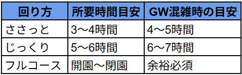 GWはどうしても混みますが、事前に所要時間をイメージしておくだけで、当日のバタバタがかなり減ります。