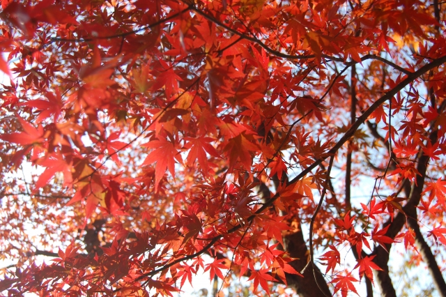 早い年は11月10日ごろからモミジが赤く染まり、12月初旬まで美しい景色が続きます。