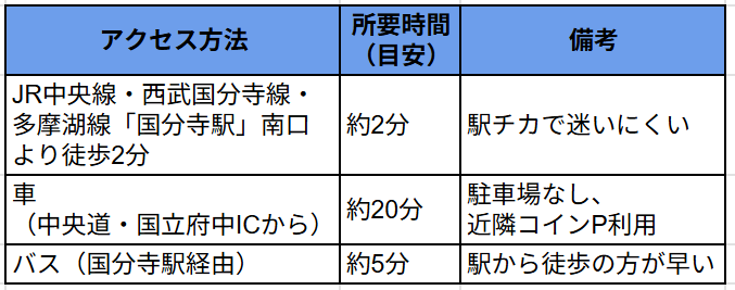 国分寺駅からすぐという立地の良さも、子連れや年配の方にはうれしいポイントだと思いました。
